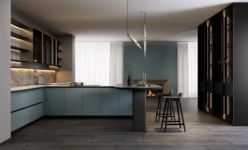 1 Flat Lamination process: Flat lamination applies decorative film onto flat boards using PUR or hot-melt adhesive. This process delivers a smooth, seamless surface with excellent durability and a premium look. It is ideal for PET and PP films, providing superior scratch resistance, heat stability, and long-lasting color.