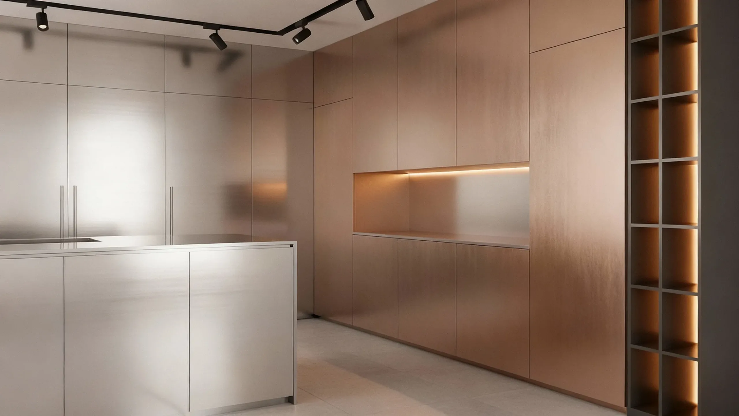 The brushed metal effect is highly realistic with a natural, refined sheen that replicates the look of stainless steel, copper, aluminum, and other metals. It offers a wide range of colors and textures, making it compatible with modern, minimal-luxury, and industrial interior styles, delivering strong decorative appeal.